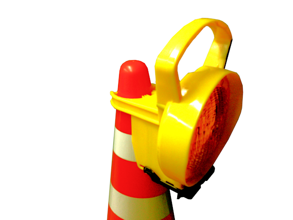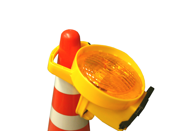 三角コーンに差し込むと従来のプリメアと同様に自動連灯。専用の使い切りバッテリーで約690時間使用可能。