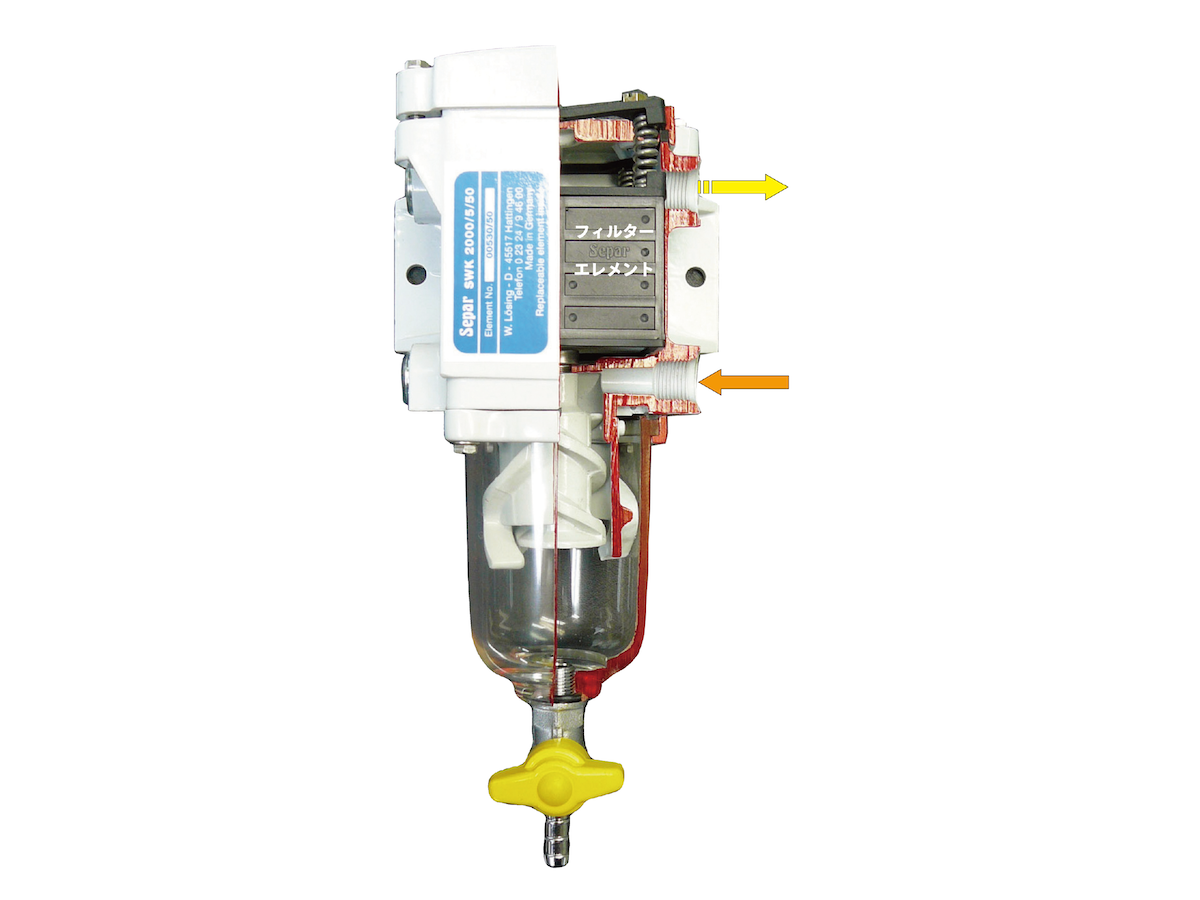 そういったトラブルを未然に防ぐ為にも、『セパー2000』がお勧めです。軽油・BDF併用モデルで、燃料ポンプ圧力損失も従来品の十分の一以下という安心設計。タンク内の汚れ具合にも依りますが、年1,2回のエレメント交換と毎月の定期メンテ時に分離水の排出だけという、取扱いがとても簡単な水分分離フィルターです!