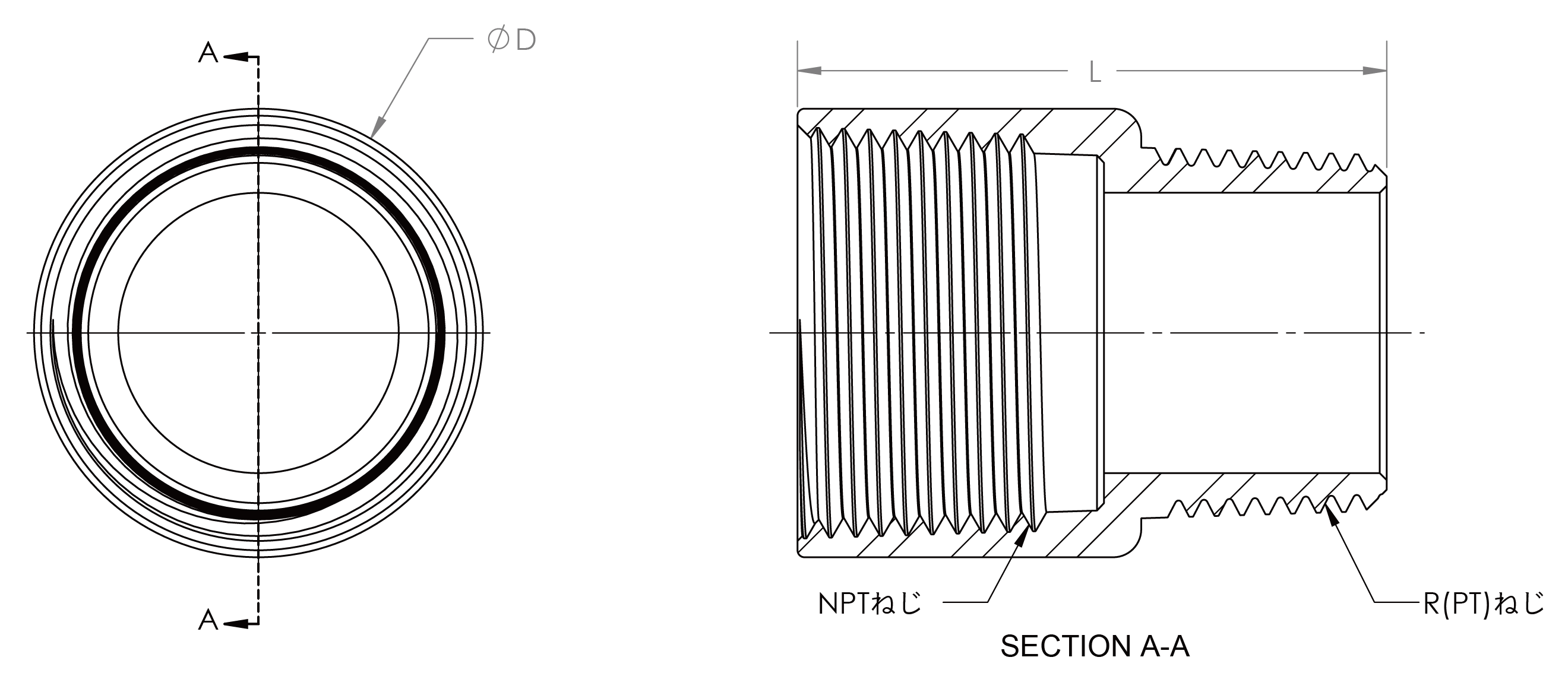 ■ SUSF316製 低圧用~2MPa NPT-PT変換アダプタ(同径)