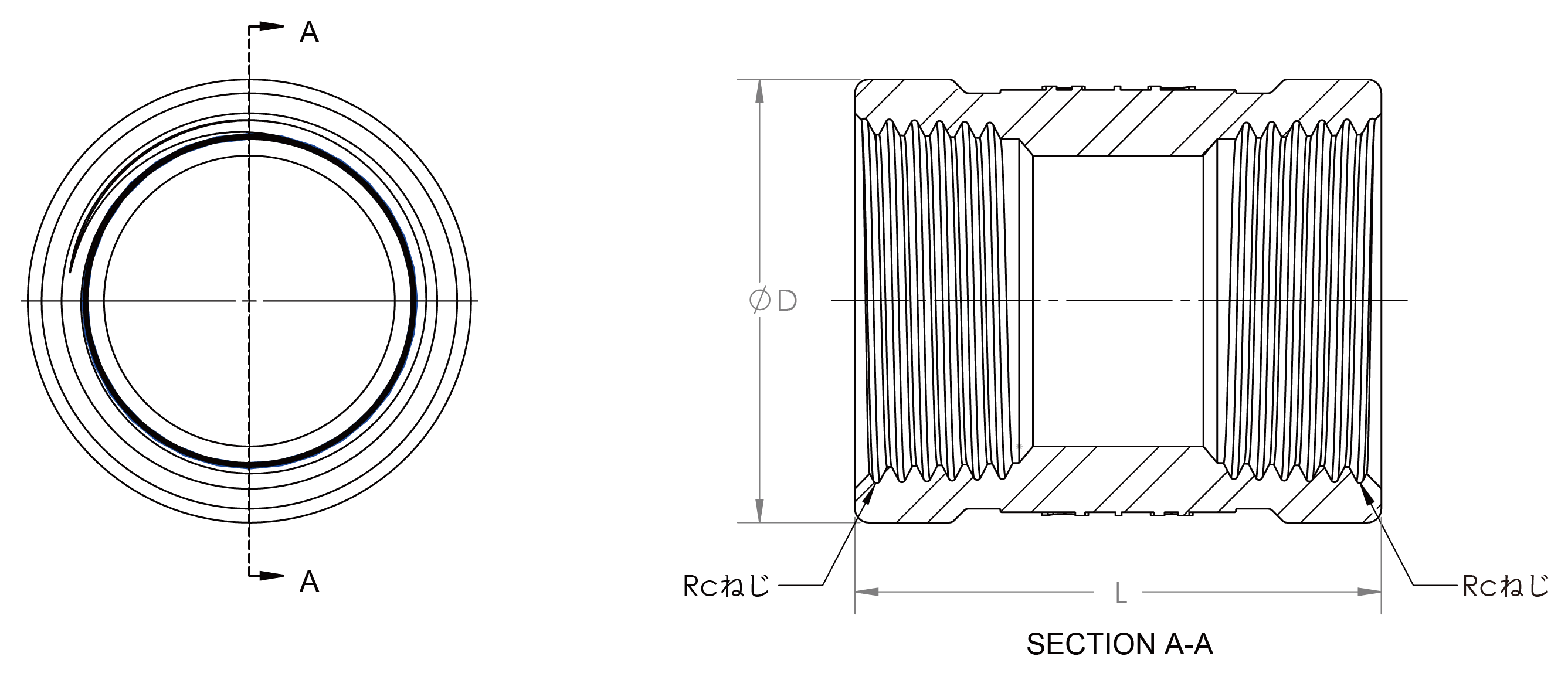 ■ SUSF316製 低圧用~2MPa サニタリー 同径ソケット(PTねじ)※バフ研磨+電解研磨仕上げ