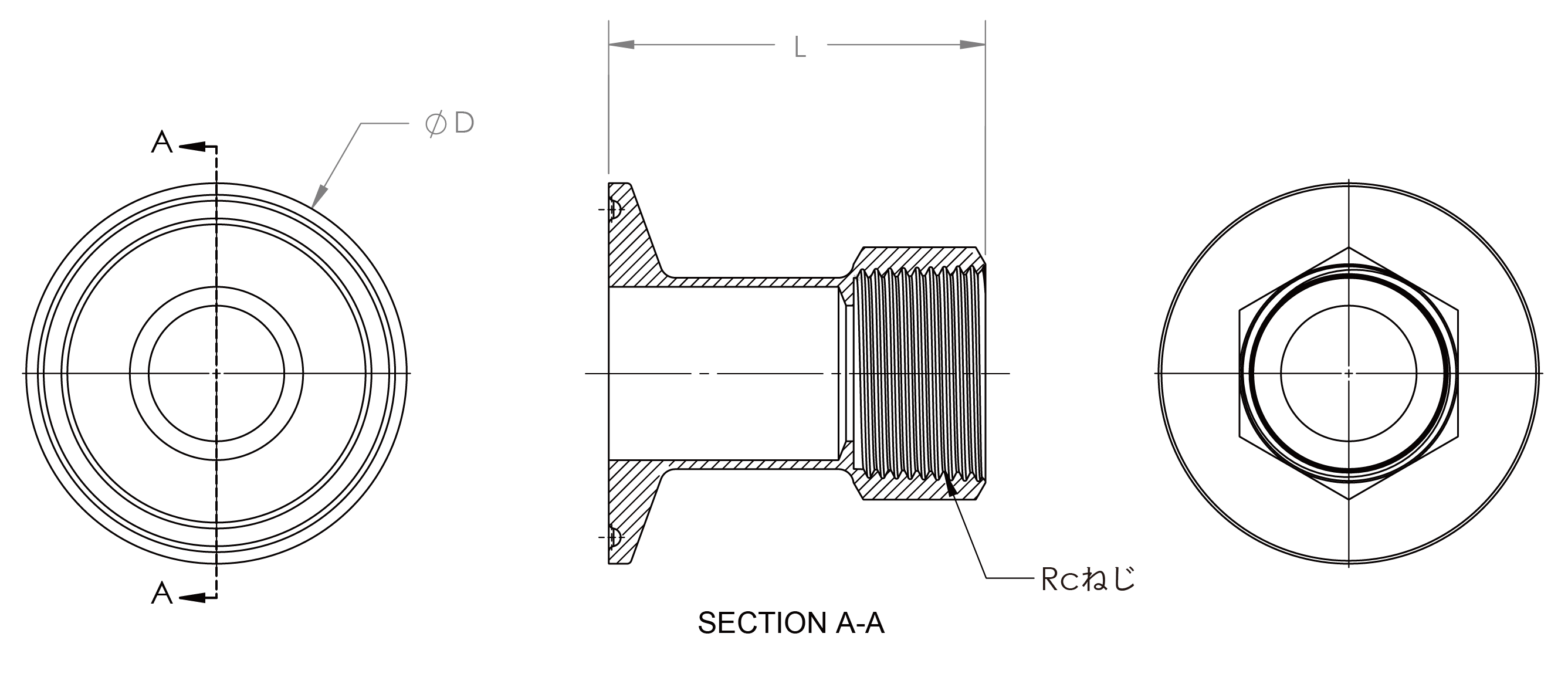 ■ SUS316L製 サニタリー へルール用テーパーねじ変換アダプタ ※バフ研磨+電解研磨仕上げ