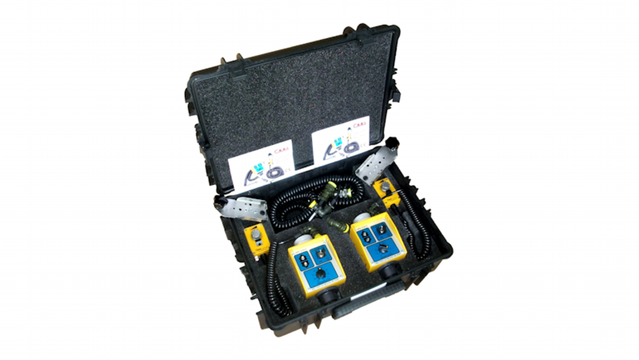 堅牢なキャリングケースに収納された、左・右の[センサー+コントローラー]が一式になった便利なセットです(1機から購入可能)