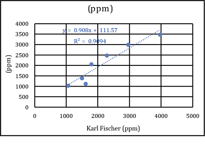 さらに、現場で基準として用いられることの多いカールフィッシャー法の結果と相関付けがしやすく、オフライン分析を補完するオンライン監視として導入しやすく、低水分域における微小な増加もppmとして具体的な数値で捉えられるため、初期の水混入兆候を早めに検知し、保全・運用の手戻りを減らせる点も実務上の利点でもあります。
