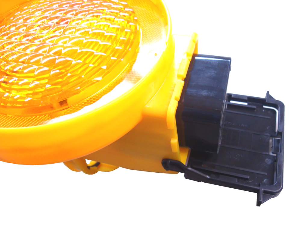 三角コーンに差し込むと従来のプリメアと同様に自動連灯。専用の使い切りバッテリーで約690時間使用可能。